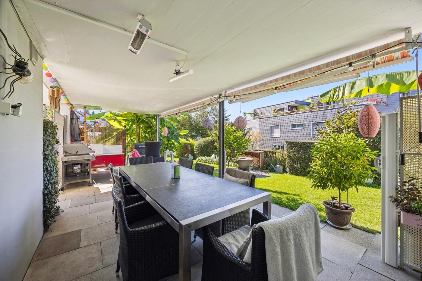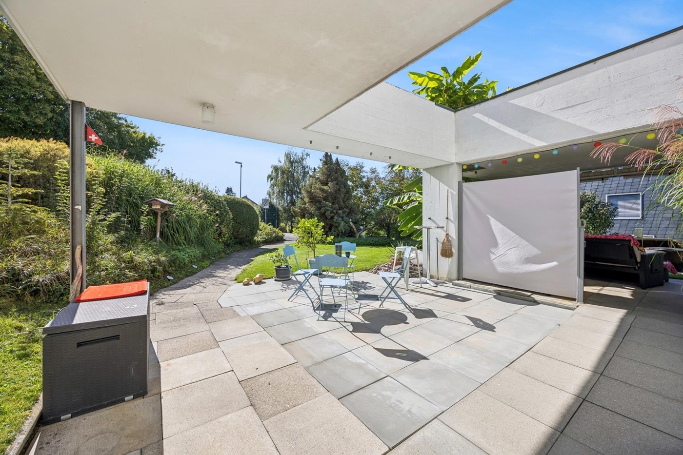 Der gedeckte Sitzplatz mit Cheminée und die grosszügige und gepflegte Gartenanlage sind ein Traum für Familien, Tier- und Gartenliebhaber.
