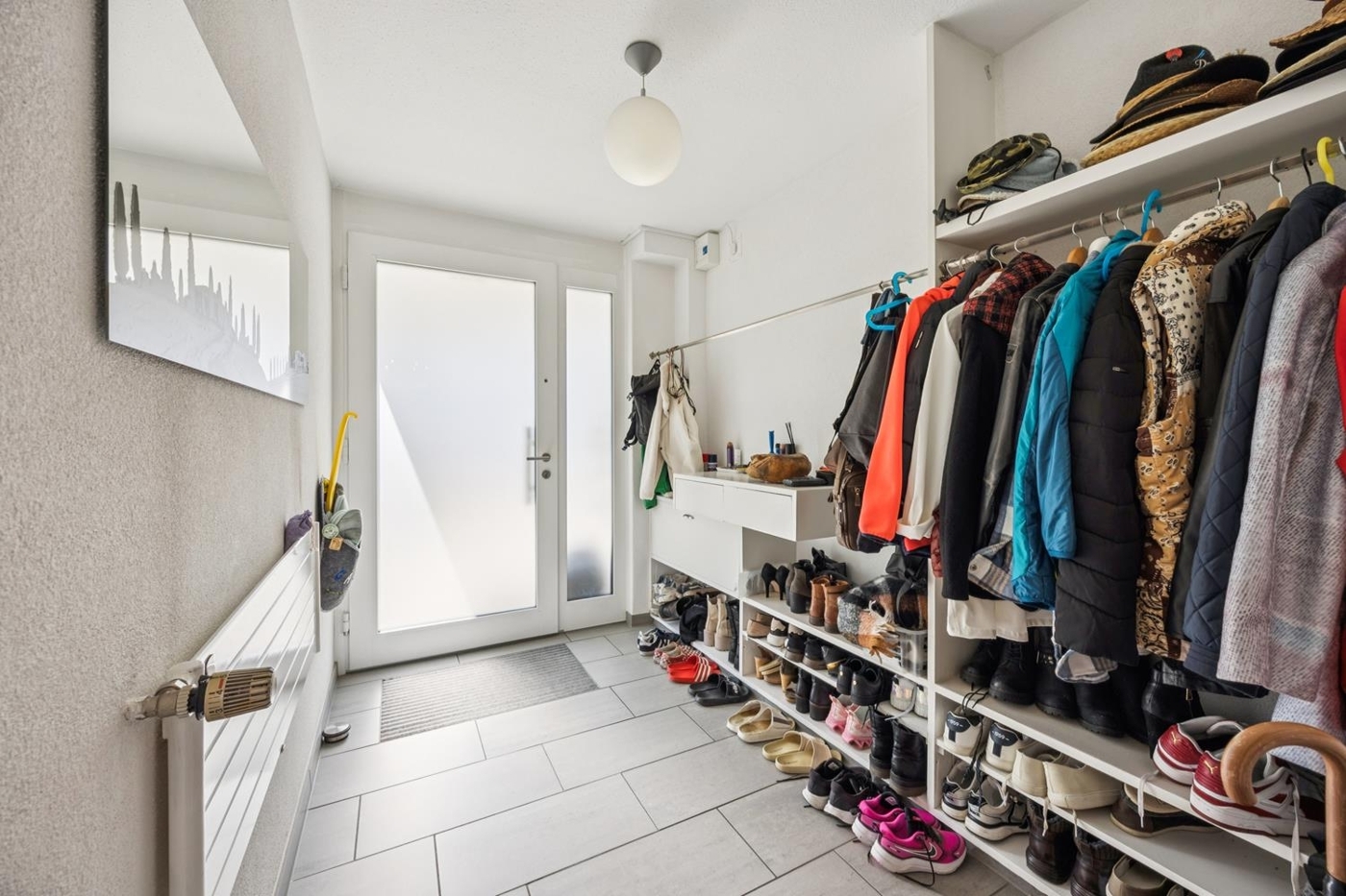 Der grosszügige Eingangsbereich sowie der Windfang bieten viel Stauraum. Von der modernen Wohnküche wie auch vom heimeligen Wohnzimmer gelangen Sie direkt zum gedeckten Sitzplatz. Im Erdgeschoss befindet sich ausserdem ein Gäste-WC, ein grosses Spielzimmer/Büro sowie eine praktische Waschküche.