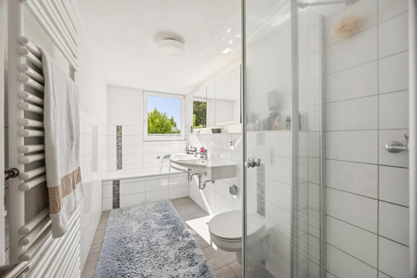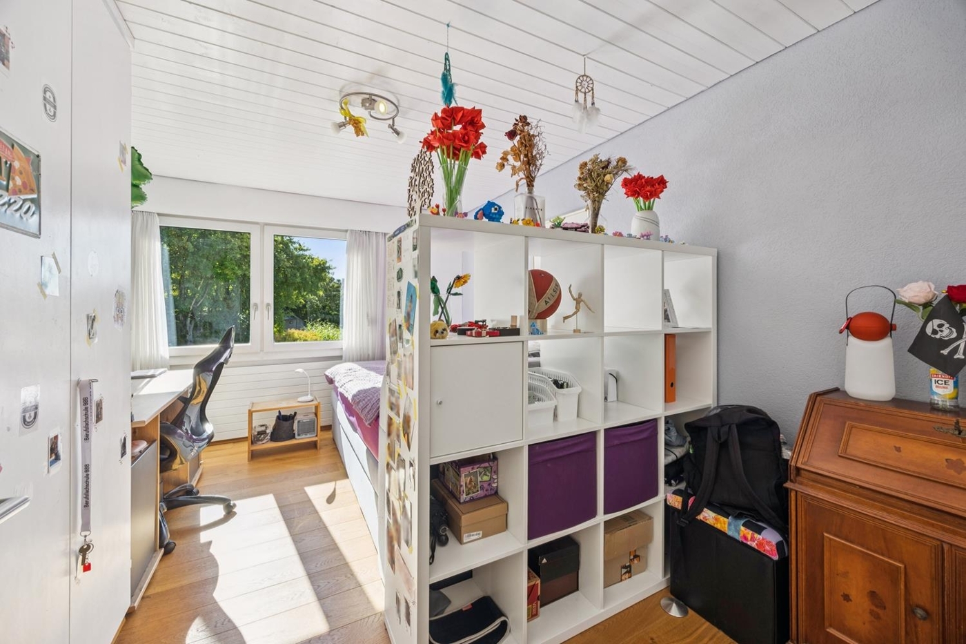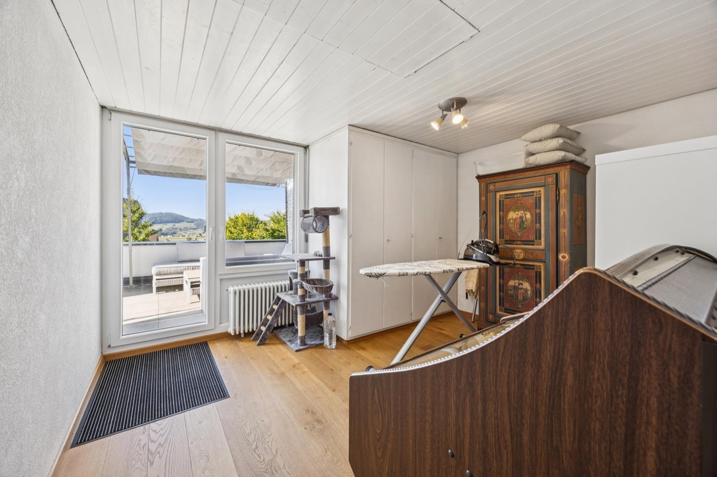 Das Obergeschoss verfügt über vier grosszügige Schlafzimmer, teilweise mit Einbauschränken und vom Elternzimmer gelangt man direkt auf die Terrasse mit traumhaftem Weitblick. Ein Badezimmer mit Doppellavabo, Dusche und Badewanne erfüllt all Ihre Bedürfnisse. Vom Obergeschoss erhalten Sie direkten Zugang zur Garage.