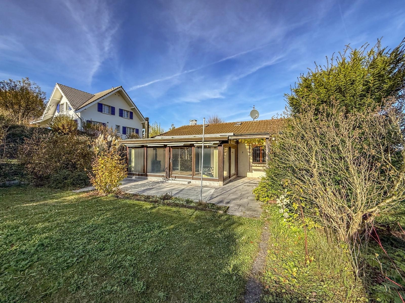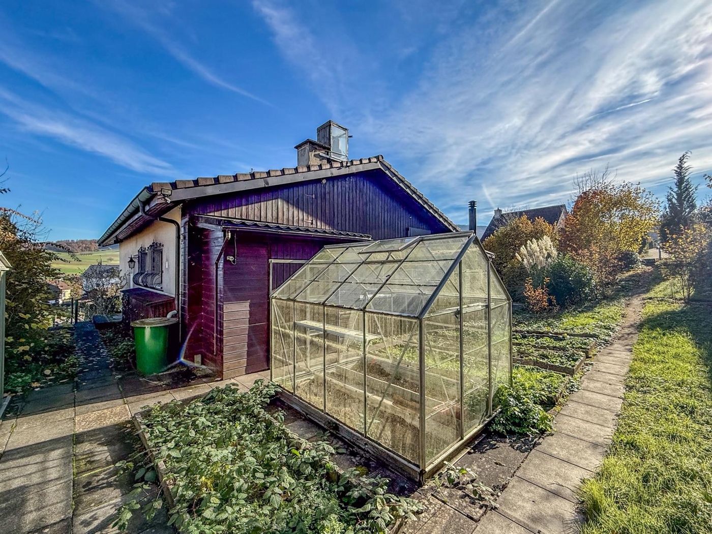 Willkommen in Ihrem neuen Zuhause! Dieses freistehende 4.5 bis 5.5-Zimmer-Haus (zwei Zimmer waren früher durch einen Einbauschrank getrennt) überzeugt durch seinen einzigartigen Charme, einen hellen Wintergarten mit Schwedenofen und eine traumhafte Weitsicht ins Grüne. Das Haus wurde über die Jahre liebevoll gepflegt und befindet sich in einem guten Zustand – ideal für alle, die Ruhe, Natur und Geborgenheit schätzen und ihr neues Zuhause mit einer stilvollen Renovation individuell gestalten möchten.