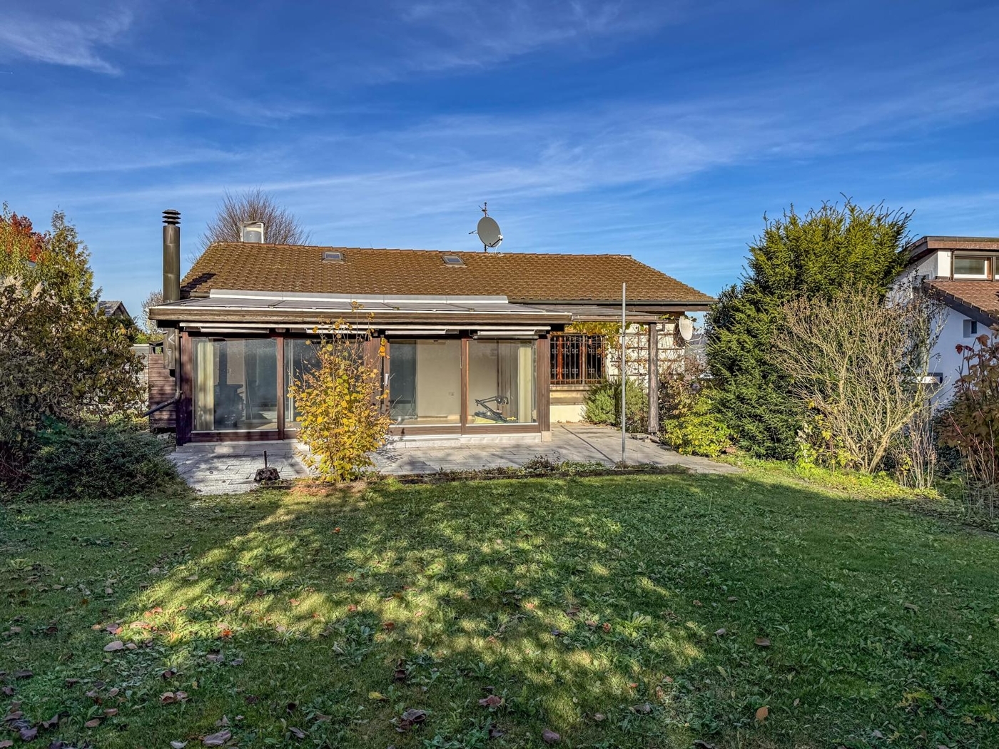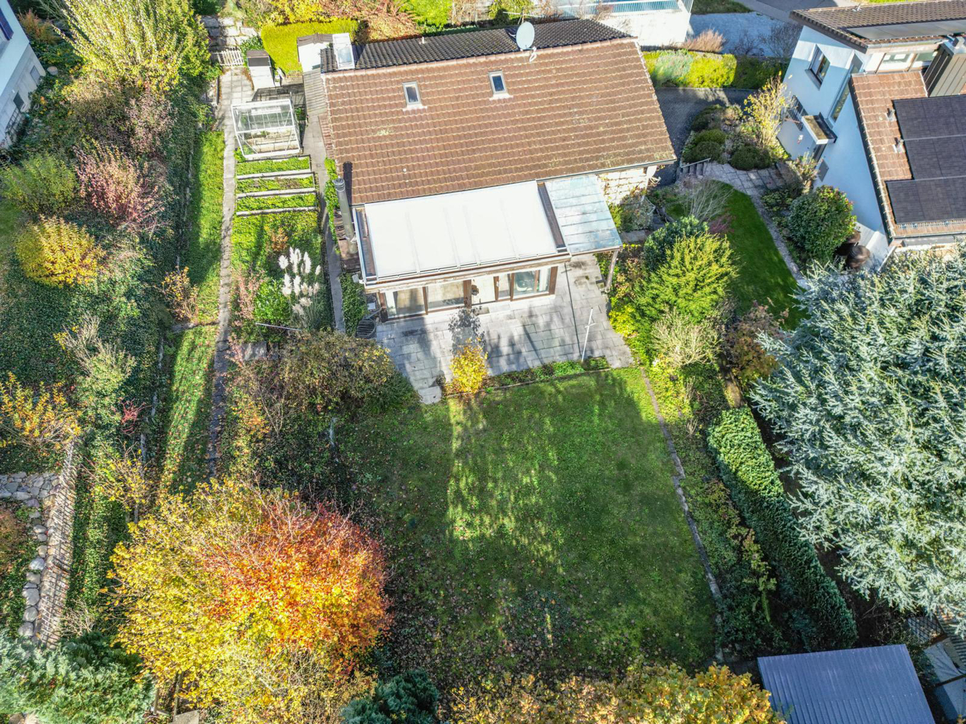 Auf einem grosszügigen Grundstück von 708 m² gelegen, bietet die Liegenschaft mit rund 137 m² Wohnfläche viel Platz für Paare oder Familien. Der gepflegte Garten mit grosser Rasenfläche, Blumenrabatten und einem Gartenhäuschen lädt zum Verweilen, Spielen oder gemütlichen Grillabenden ein.
