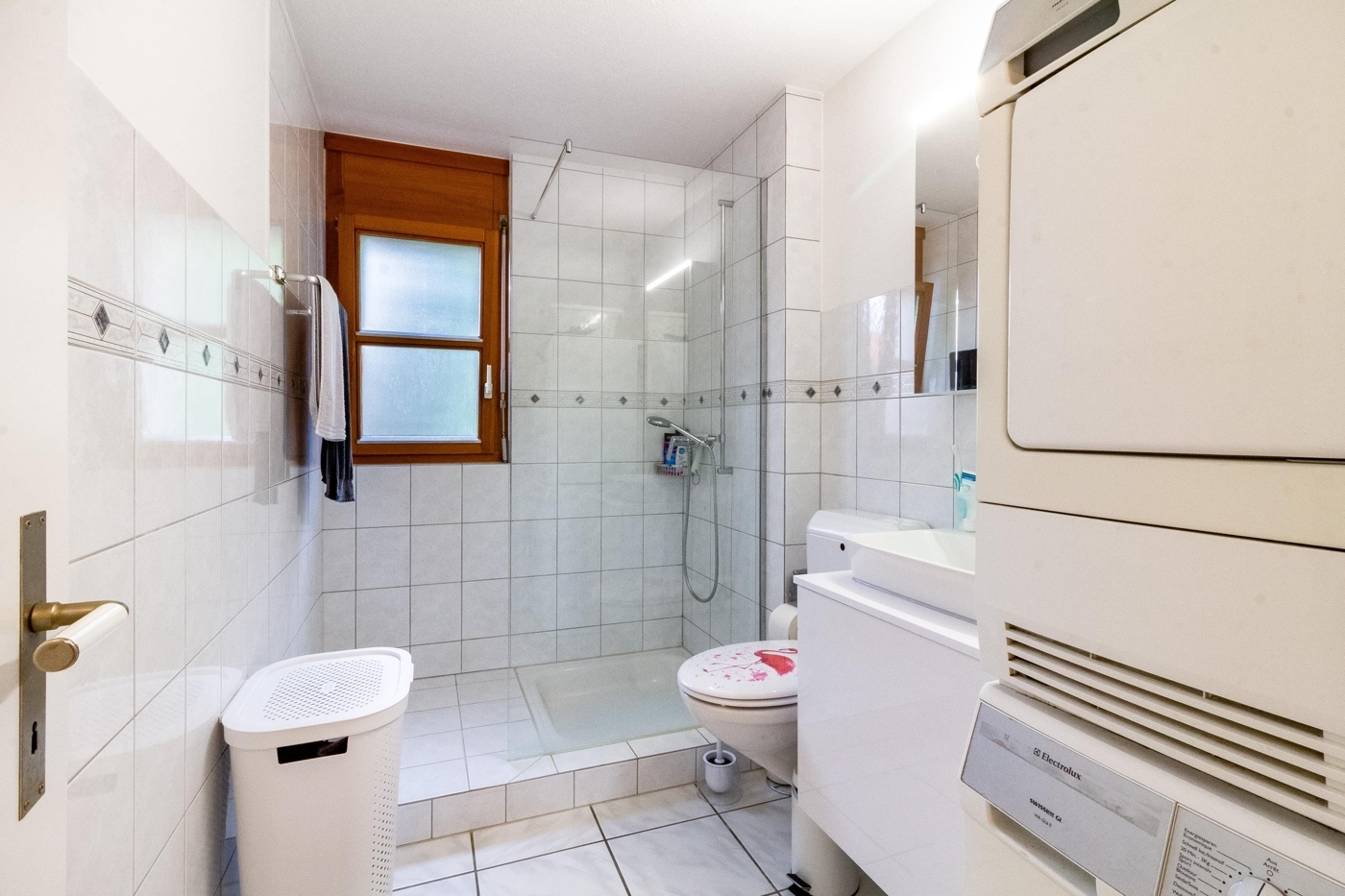 - Dusche/WC mit Fenster, Waschmaschine, Tumbler und Lavabo mit Unterbaumöbel