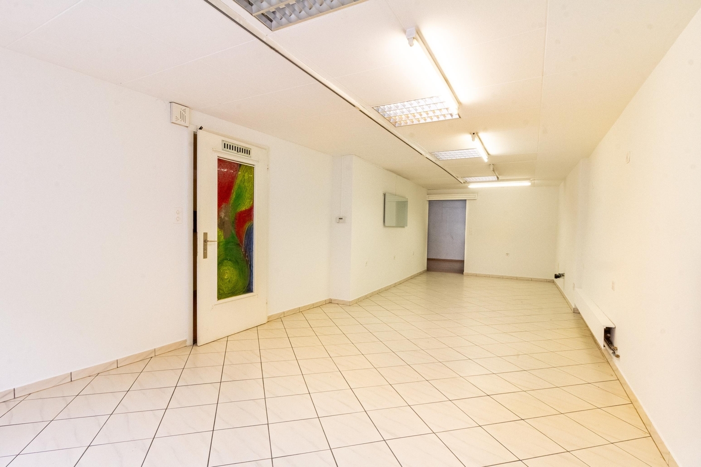 Das Haus verfügt über 5 Etagen. Im Erdgeschoss befindet sich ein Gewerberaum für Büro- oder Verkaufsfläche mit WC, Lavabo und Warmwasserboiler.