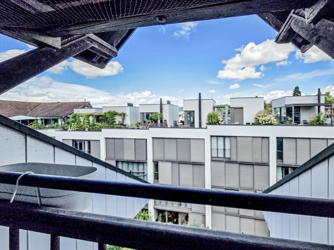 Historische Stuckaturen, Sichtholzbalken, gemütlicher Parkettboden und lichtdurchflutete beheizte Wintergarten-Loggien schaffen ein Zuhause mit Persönlichkeit. Als Krönung präsentiert sich ein atemberaubender Blick über die Dächer der Altstadt bis hin zum Schloss Lenzburg.